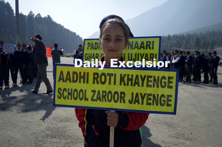Rallying for Education : A peace rally organized by students of Army Good Will School Phalagam under save our future save our education programme at Pahalagam Ananatnag…Excelsior\Sajad Dar