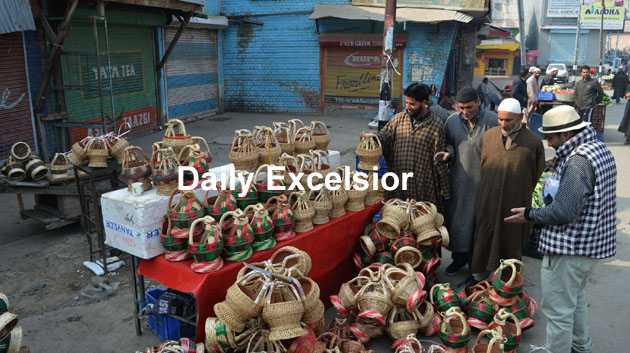 A man selling traditional kangris (Fire pot) at shopian on saturday…Excelsior\younis khaliq
