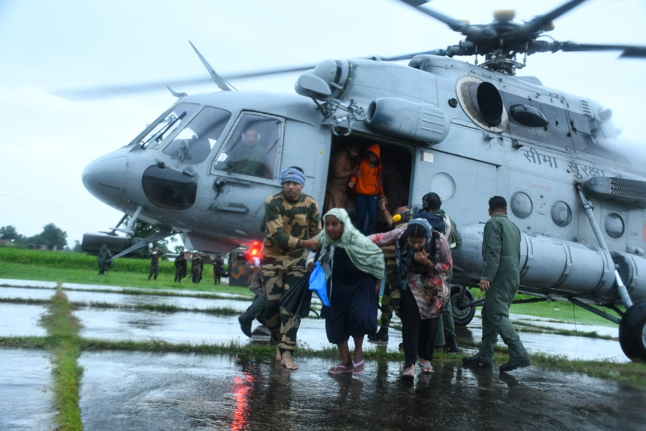 Jammu, Sep 3: In a daring operation, the Border Security Force (BSF) pressed its helicopter to launch a high-risk rescue operation to evacuate 45 civilians, including women and children who were trapped in their flooded village in Akhnoor sector near here on Wednesday, officials said.