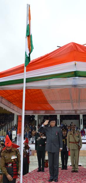 The Governor inspected the parade and took the salute at an impressive march past which was commanded by Col. Ajay Thakur, CO of 10th Battalion J&K Light Infantry. The smart contingents participating in the Parade were from the Army, Border Security Force, Central Reserve Police Force, men and women contingents of the JKAP/IRP, J K Police, State Disaster Response Force, Himachal Pradesh Police, J&K Fire and Emergency Services, J&K Forest Protection Force, ex-Servicemen, NCC Boys and Girls, Bharat Scouts and Guides, Boys and Girls from various schools, Bands of Army, BSF, J&K Police, Jammu and Kashmir Armed Police and of several Boys and Girls Schools.