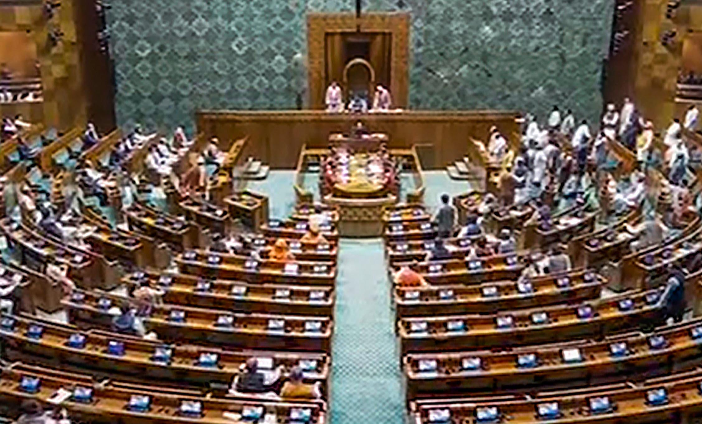 The motion for the suspension of MPs was moved by Parliamentary Affairs Minister Pralhad Joshi. When the House reassembled at 3 pm after adjournments earlier, BJP MP Rajendra Agrawal, who was in the Chair, said that the members had been violating rules.