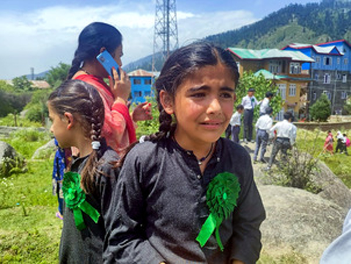 Panic-stricken schoolchildren gathered in fields in the Bhaderwah valley and teachers were seen consoling a few of them who were sobbing.
