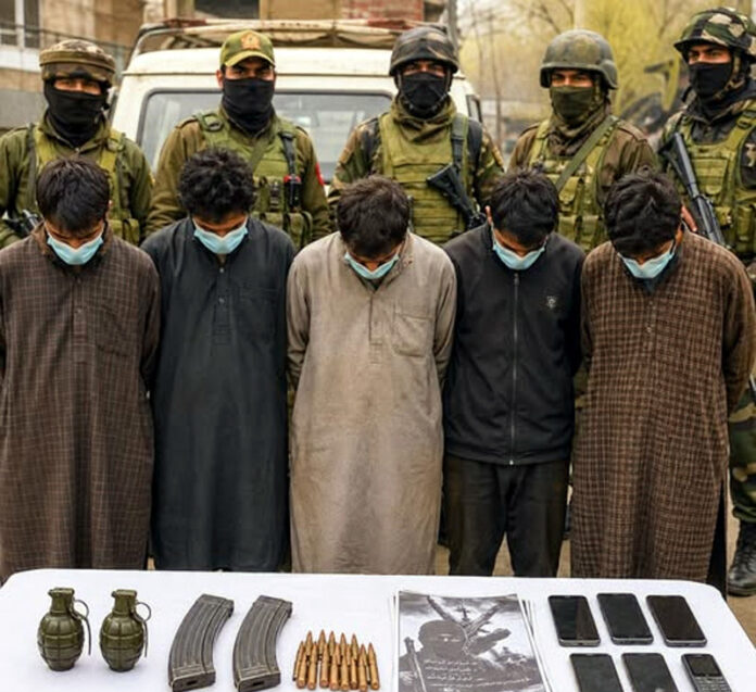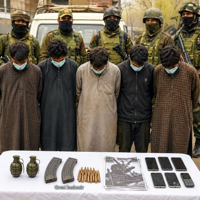 SRINAGAR, Apr 28: Five persons were arrested with grenades, ammunition and other incriminating material in Srinagar today.