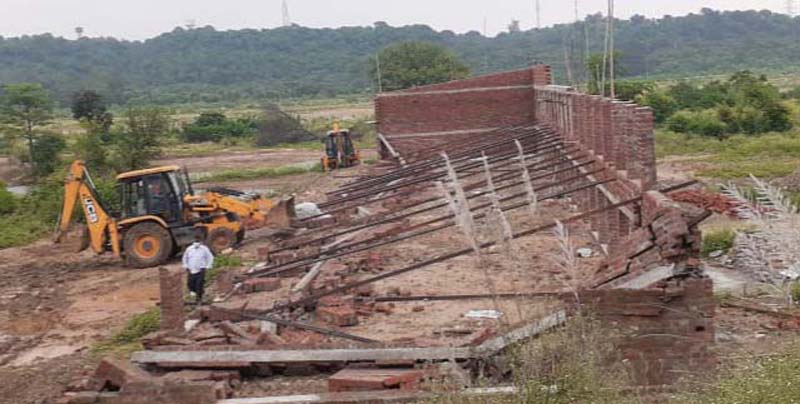 The anti encroachment team led by Sub Divisional Magistrate, Ghagwal, Ram Kesh Sharma, Tehsildar Ghagwal Raman Chalotra, SHO Kuldeep Raj besides other revenue and police officials reached the encroached site and pressed a JCB machine into action and dismantled the under construction sheds, concrete walls, Shuttering and other RCC pavements.