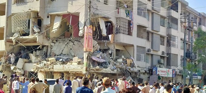 At least two floors of the building near Maskan Chowrangi in the Gulshan-e-Iqbal area in Karachi were severely damaged, creating fears that casualties may rise.