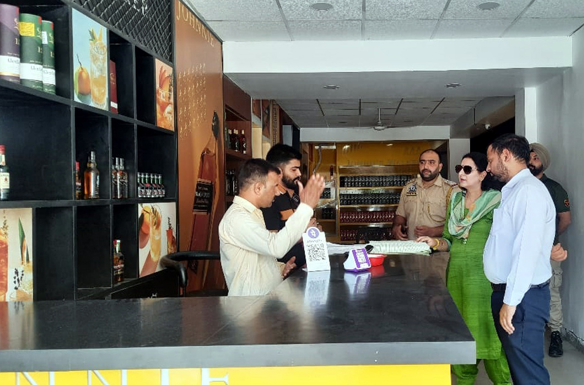 A team led by Deputy Excise Commissioner, Executive, (Jammu) Kusum Sharma, comprising of ETO South Ankit Gupta, Inspector Sunil Sharma conducted surprise inspection at various wine shops at Gandhi Nagar, Trikuta Nagar, Satwari, Narwal and adjoining areas today. During inspection emphasis was laid on display of MRP and availability of digital mode of payment like, UPI.