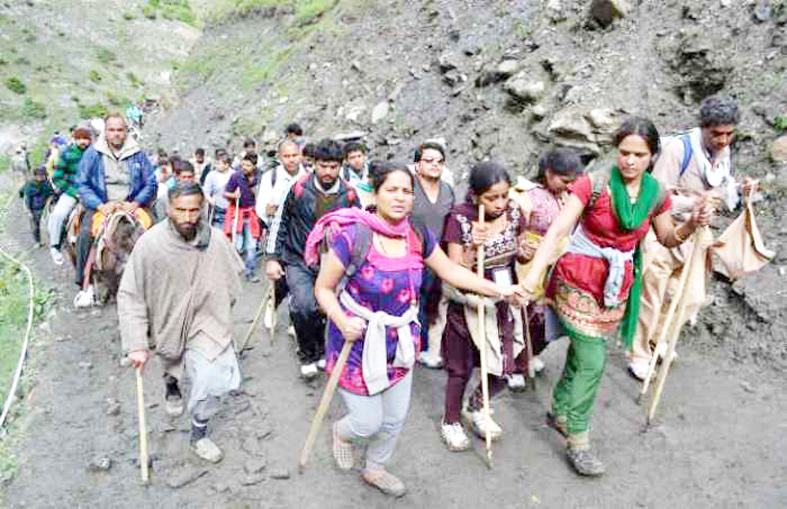 Meanwhile, majority pilgrims who took traditional Pahalgam track to reach the cave shrine are also returning via shortest Baltal track. Similarly, fresh batch of pilgrims, who had a night halt at Nunwan Pahalgam base camp, have left for Chandanwari, the last motorable halting station on the traditional track. Pilgrims, who had night halt at different halting stations on the traditional route, have also started their foot journey towards the cave shrine. (AGENCIES)