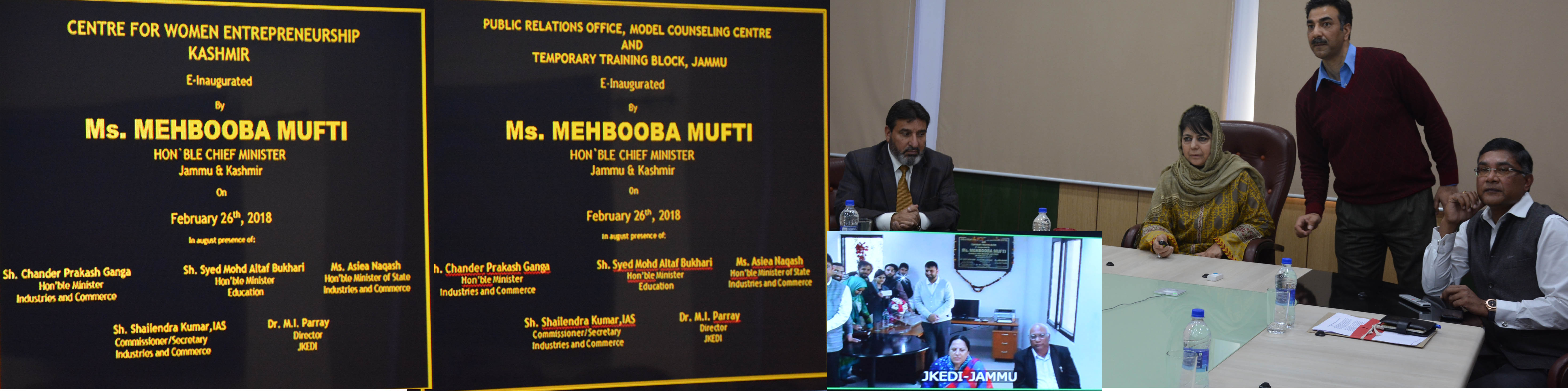 JAMMU: As a gift to facilitate their activities, Chief Minister, Mehbooba Mufti today e inaugurated two Centres for Women Entrepreneurship for Jammu and Srinagar.