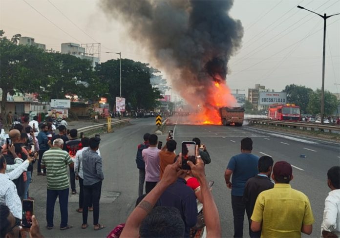 City Commissioner of Police Amitesh Kumar, who visited the spot, said, “The fire erupted due to the impact of the collision.”