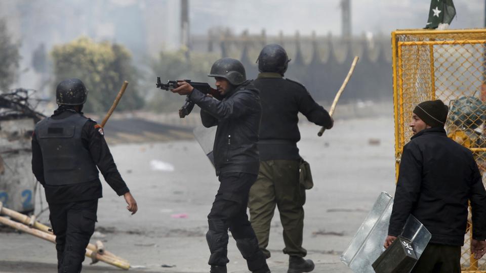 Police and paramilitary forces fired tear gas and rubber bullets at the protesters to disperse them. However, the security forces pulled back after the crackdown turned deadly.