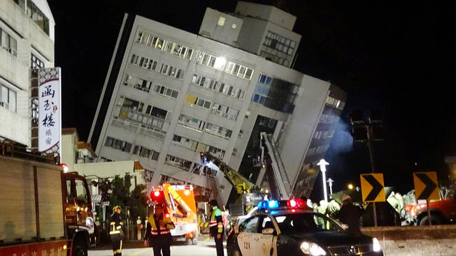 Video footage and photos showed several midsized buildings in worst-hit Hualien county leaning at sharp angles, their lowest floors crushed into mangled heaps of concrete, shattered glass, bent iron beams and other debris.