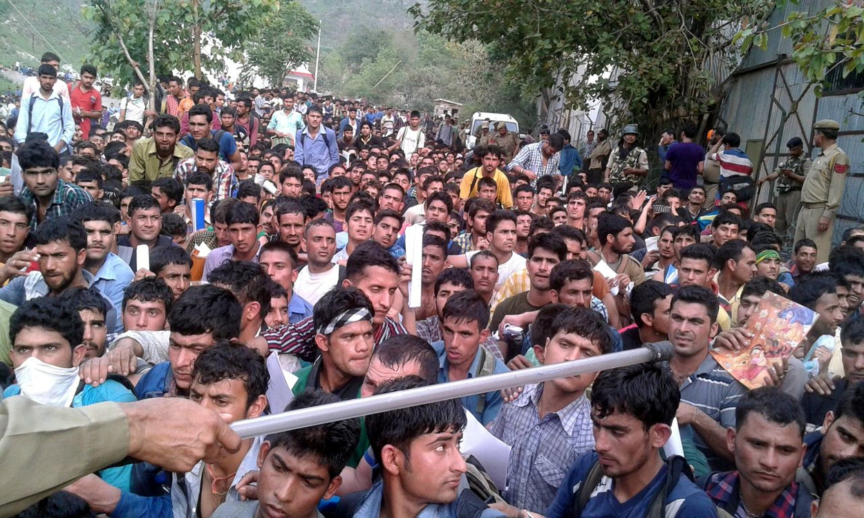 Over 15000 candidates from different areas had reached Talwara on Monday though the first day was meant for only Reasi district candidates.