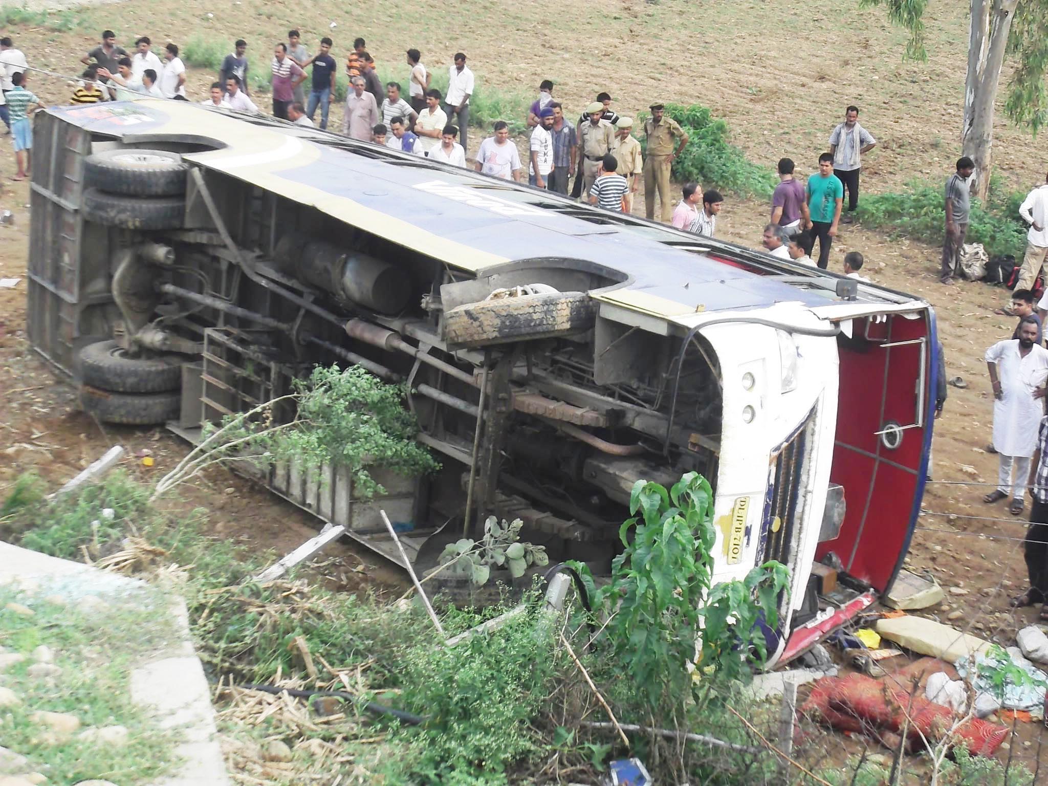 Reports said a bus bearing registration No. DL-IPV/7101 was on way to Katra Vaishnodevi from Gorakhpur in Utter Pradesh. When it reached near Dayala Chak flyover of rail track at around 4.30 pm, the driver had wink of sleep and the vehicle rolled down and turned turtle.