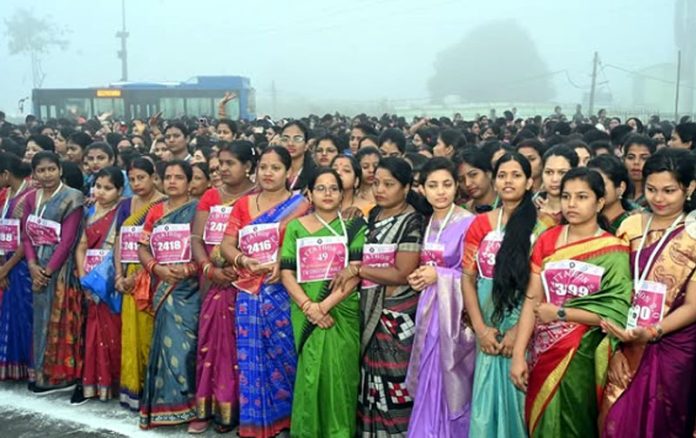 BHUBANESHWAR, Jan 25: Odisha capital Bhubaneswar on Saturday witnessed a unique mini-marathon with nearly 6,000 women wearing traditional sarees taking part in the run from Shikharchandi temple square to KISS athletics stadium.