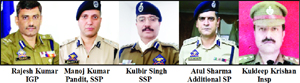 Home Department has sanctioned Sher-i-Kashmir Police Medal for Meritorious Service in favour of IGPs Rajesh Kumar, Director SSG, J&K, Abdul Rashid Bhat, SSP, Kulbir Singh, SSP AIG (CIV) PHQ J&K, Shoket Hussain Shah, SSP CID SB Kashmir, Manoj Kumar Pandit, SP, AIG (Communication) PHQ and Altaf Ahmed Dar, DySP Security Kashmir.
