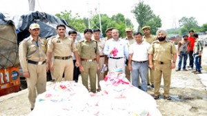 A team of Excise and Taxation Officers –Ravi Thakur, Sanjay Bhat, VS Billowria, Naeem Mugal, Sahil Jandyal and Lekh Raj, Inspectors Excise, Farooq Chowdhary and Ravinder Singh and Sub-Inspectors Excise, Dheeraj Kumar and Brij Pal Singh under the supervision of Deputy Excise Commissioner, Toll Post Lakhanpur, Dr Mushtaq Ahmed, intercepted the truck and recovered 650 kgs of banned polythene bags loaded in the vehicle.