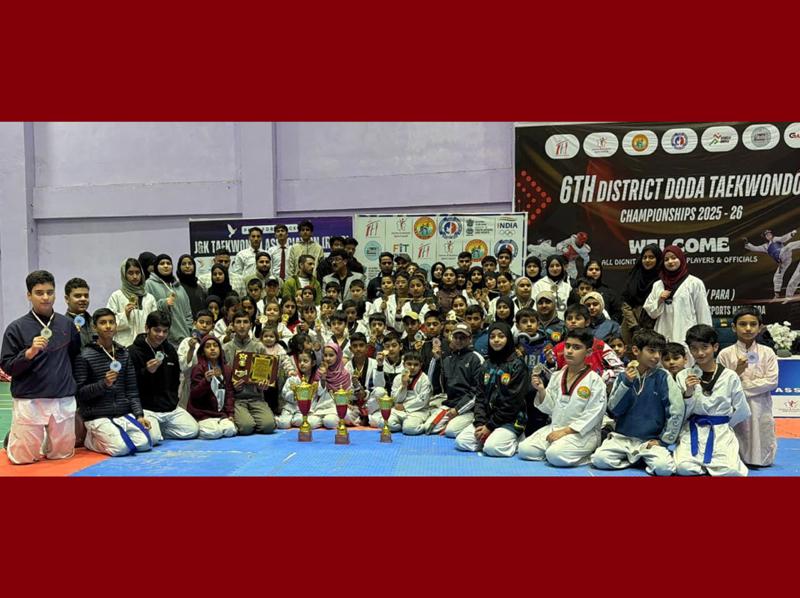 DODA/JAMMU, Dec 22: The 6th District Doda Taekwondo Championships 2025–26 concluded successfully at Indoor Sports Hall, Doda, with young athletes showcasing remarkable skill, dedication, and competitive spirit. Organised by Taekwondo Association of District Doda under the aegis of the J&K Taekwondo Association (JKTA) and J&K Sports Council (JKSC), around 150 players representing schools and clubs across the district participated.