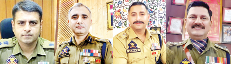 The officers who have been awarded are SSP Rajouri Chandan Kohli, SP Operations Srinagar Tahir Ashraf, ASP Budgam Amit Verma, SDPO Akhnoor Ajay Sharma, Inspector Dilraj Singh, Inspector Syed Parveez Sajad and ASI Farooq Ahmad Mantoo.