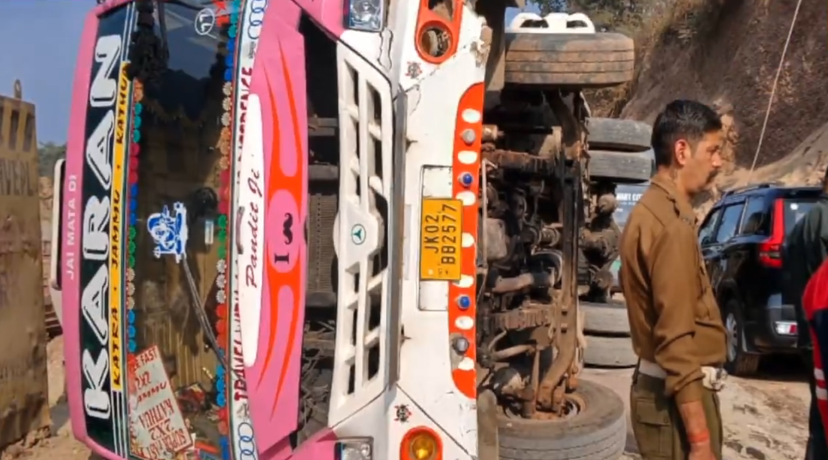 Quoting officials, that a bus bearing registration number JK-02BB- 2577 on its way from Katra towards Jammu turned turtle at Myari bridge resulting injuries to seven people.