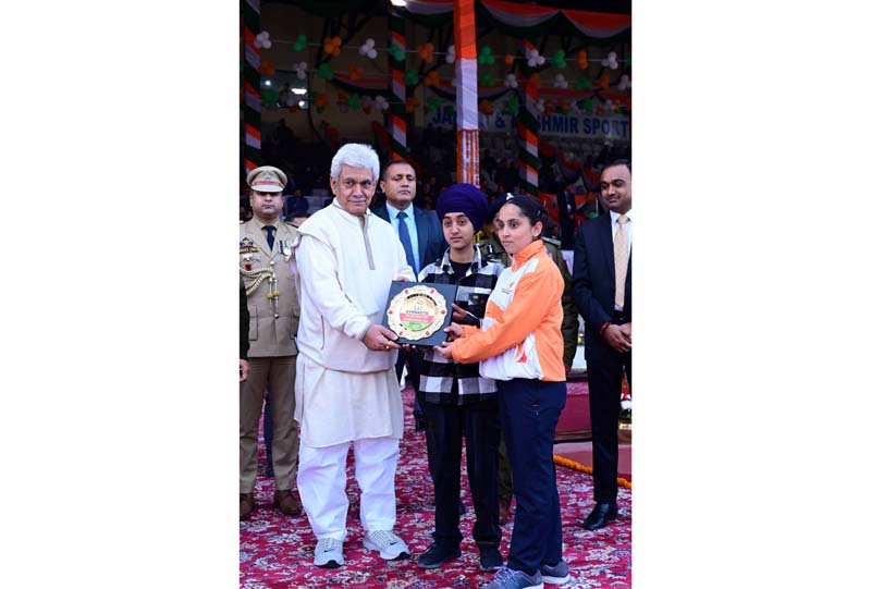 The Lt Governor felicitated the contingents of Jammu Kashmir Police and Security Forces; Parade Commander, Dy Parade Commander, marching contingents of cadets from NCC (Boys), contingents of schools (Boys and Girls), cultural performers, Gymnastics and Tableaux of different departments for their outstanding display at the grand event. He also awarded the winners of the Patriotic Song Singing competition organized by the Directorate of Information and Public Relations.