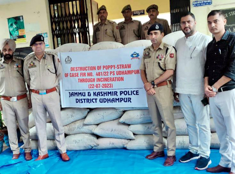 UDHAMPUR, July 22: District Drug Destruction Committee, headed by SSP Udhampur. Dr Vinod Kumar today carried out incineration of 771.934 kg poppy straw, which was seized in case FIR number 481/2023 U/S 8/15 NDPS Act of PS Udhampur.
