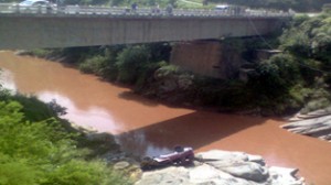 A vehicle which fell from a bridge in Sunderbani on Thursday.