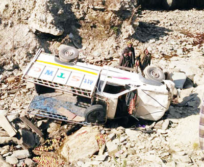 As the vehicle reached near Chandimarh on Mughal Road, the driver lost controlled over the vehicle at a curve and the vehicle landed into a gorge. Immediately, after the mishap, the people of the area and some people travelling in other vehicles rushed to the accident site. The police party from Police Post Behramgalla also arrived there after some time and joined rescue operation.