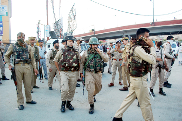 Militants lobbed a grenade and opened fire on the personnel from a crowd when they were busy with law and order duties on Tral road, a police spokesman said.