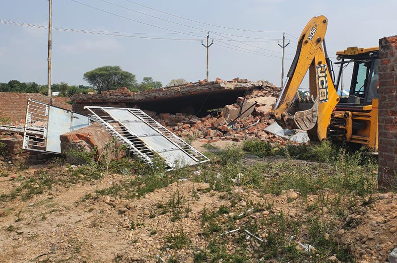 A team headed by Tehsildar Bari Brahmana, Qaiser Malik, SHO and other officials of revenue and police reached at the encroachment site and pressed a JCB machine to dismantle the concrete structures including four structures, boundary wall, hand pump, pillars, plinth etc being constructed over the UT land bearing khasra numbers 826, 836 and 1763.
