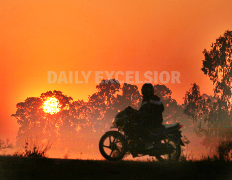 A biker heads towards his destination during Sun rise in Jammu on Sunday. -Excelsior/Rakesh