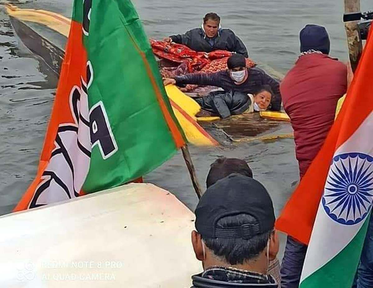 A boat in the BJP rally capsized in Dal lake on Sunday. By Daily Excelsior - December 14, 2020 Share FacebookTwitterWhatsAppPinterestLinkedinCopy URLTelegramEmailTumblrReddItPrintKoo A boat in the BJP rally capsized in Dal lake on Sunday. A boat in the BJP rally capsized in Dal lake on Sunday. Follow our WhatsApp channel