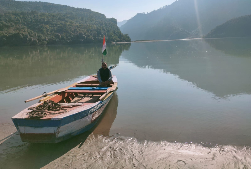 A boat rider crosses river Chenab in Chinkah area of Reasi district. —Excelsior/Romesh Mengi