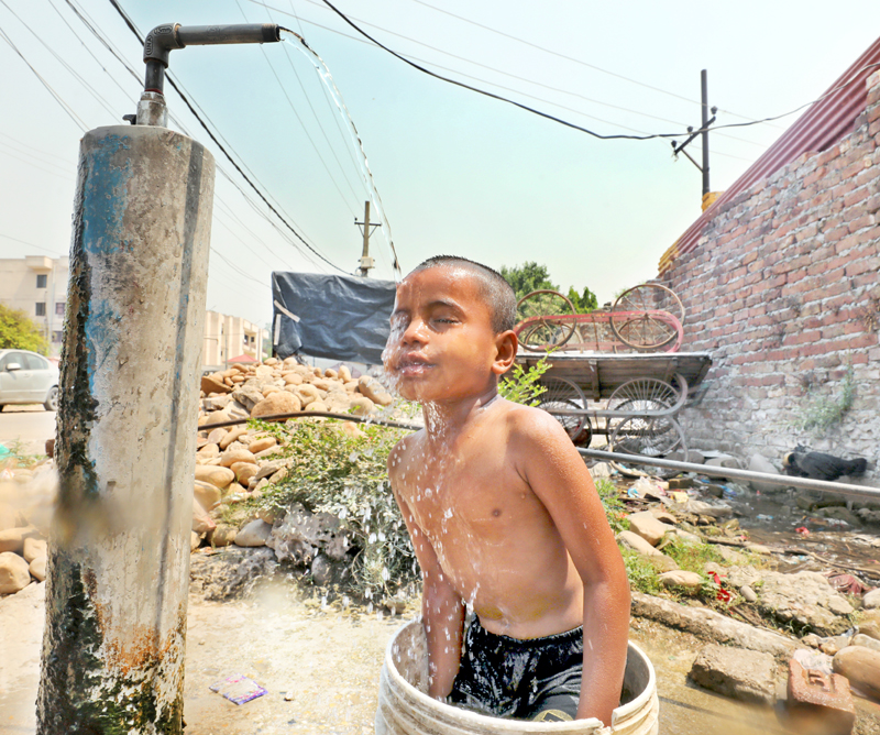 A boy baths under water pump on a hot summer day on the outskirts of Jammu. – Excelsior/Rakesh By Daily Excelsior - May 12, 2022 Share FacebookTwitterWhatsAppPinterestLinkedinCopy URLTelegramEmailTumblrReddItPrintKoo A boy baths under water pump on a hot summer day on the outskirts of Jammu. - Excelsior/Rakesh A boy baths under water pump on a hot summer day on the outskirts of Jammu. – Excelsior/Rakesh Follow our WhatsApp channel