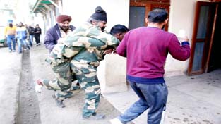 A BSF jawan injured in Pakistan firing being shifted to hospital by his colleague in R S Pura on Saturday.-Excelsior/Rakesh By Daily Excelsior - January 20, 2018 Share FacebookTwitterWhatsAppPinterestLinkedinCopy URLTelegramEmailTumblrReddItPrintKoo A BSF jawan injured in Pakistan firing being shifted to hospital by his colleague in R S Pura on Saturday.-Excelsior/Rakesh A BSF jawan injured in Pakistan firing being shifted to hospital by his colleague in R S Pura on Saturday.-Excelsior/Rakesh Follow our WhatsApp channel