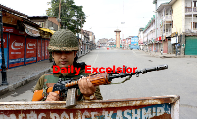 A BSF man stand guard during curfew at Lal Chowk in Srinagar on Friday .Excelsior\Shakeel-ul-Rehman By Daily Excelsior - August 26, 2016 Share FacebookTwitterWhatsAppPinterestLinkedinCopy URLTelegramEmailTumblrReddItPrintKoo Follow our WhatsApp channel