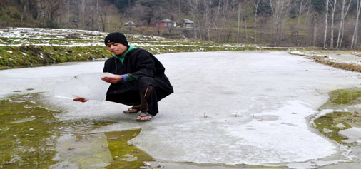 A child sits on frozen water body in Baramulla on Saturday. -Excelsior/ Aabid Nabi By Daily Excelsior - December 26, 2015 Share FacebookTwitterWhatsAppPinterestLinkedinCopy URLTelegramEmailTumblrReddItPrintKoo A child sits on frozen water body in Baramulla on Saturday. -Excelsior/ Aabid Nabi A child sits on frozen water body in Baramulla on Saturday. -Excelsior/ Aabid Nabi Follow our WhatsApp channel