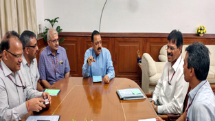 A delegation of Railway Engineers holding a meeting with Union Minister Dr Jitendra Singh at his DoPT office at North Block, New Delhi.
