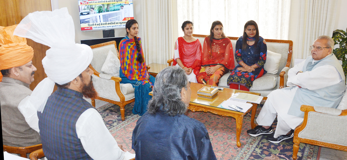 A delegation of tableau artists of J&K, who represented the State in Republic-Day Parade, 2019, led by Rupali Gupta in a meeting with Governor Satya Pal Malik at the Raj Bhavan in Jammu. The delegation apprised Governor about various issues being faced by the artists and put forth their suggestions for promotion of art related activities in the State.
