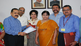 A deputation of "National Association of the Deaf" (NAD) presenting a memorandum to Union Minister Dr Jitendra Singh at New Delhi.