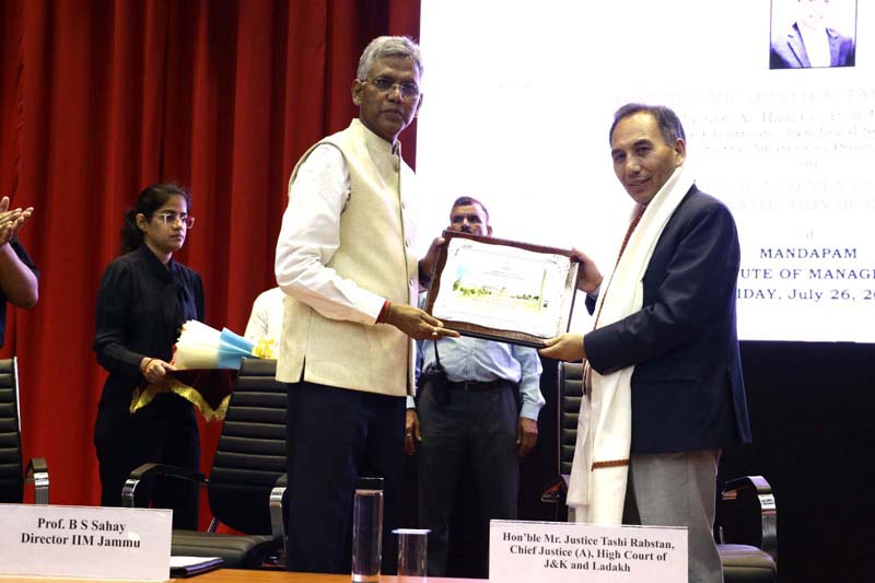 A dignitary welcoming Chief Justice Tashi Rabstan at IIM Jammu on Friday. By Daily Excelsior - July 26, 2024 Share FacebookTwitterWhatsAppPinterestLinkedinCopy URLTelegramEmailTumblrReddItPrintKoo A dignitary welcoming Chief Justice Tashi Rabstan at IIM Jammu on Friday. A dignitary welcoming Chief Justice Tashi Rabstan at IIM Jammu on Friday. Follow our WhatsApp channel