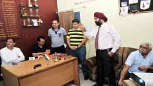 A doctor educating gathering during knee-joint replacement consultation camp in Jammu on Sunday. Assembly Speaker Kavinder Gupta is also seen.