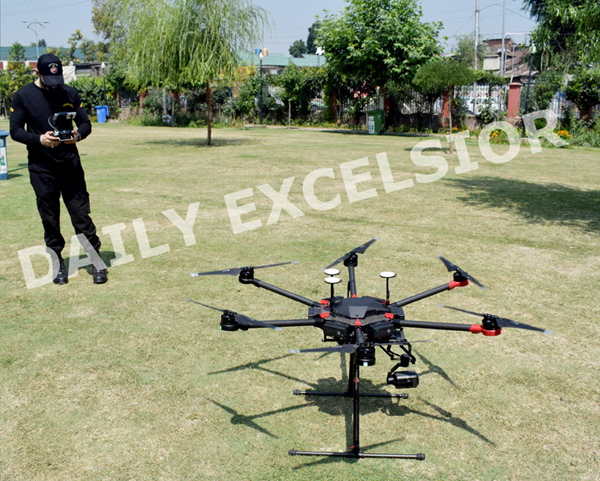 A drone being used for surveillance in Srinagar on Thursday. —Excelsior/Shakeel