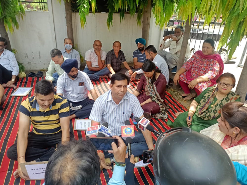 A leader of J&K EPFO employees speaking to media persons during their sit-in protest at Divisional Provident Office, Jammu. By Daily Excelsior - April 21, 2022 Share FacebookTwitterWhatsAppPinterestLinkedinCopy URLTelegramEmailTumblrReddItPrintKoo A leader of J&K EPFO employees speaking to media persons during their sit-in protest at Divisional Provident Office, Jammu. A leader of J&K EPFO employees speaking to media persons during their sit-in protest at Divisional Provident Office, Jammu. Follow our WhatsApp channel