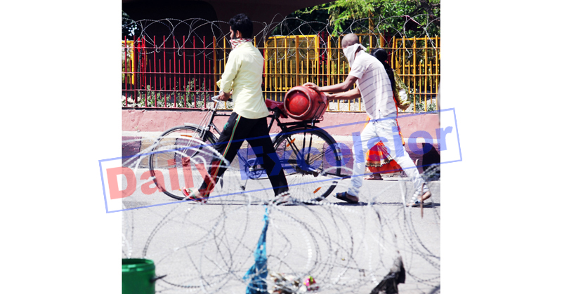 A man carries LPG cylinder on bicycle during lockdown in Jammu on Friday. -Excelsior/Rakesh By Daily Excelsior - May 9, 2020 Share FacebookTwitterWhatsAppPinterestLinkedinCopy URLTelegramEmailTumblrReddItPrintKoo A man carries LPG cylinder on bicycle during lockdown in Jammu on Friday. -Excelsior/Rakesh A man carries LPG cylinder on bicycle during lockdown in Jammu on Friday. -Excelsior/Rakesh Follow our WhatsApp channel