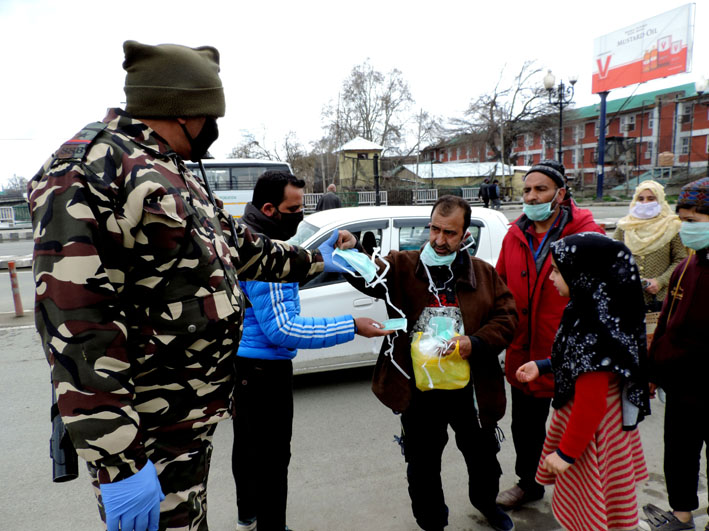 A man distributing masks among people in Srinagar on Thursday. (UNI) By Daily Excelsior - March 27, 2020 Share FacebookTwitterWhatsAppPinterestLinkedinCopy URLTelegramEmailTumblrReddItPrintKoo A man distributing masks among people in Srinagar on Thursday. (UNI) A man distributing masks among people in Srinagar on Thursday. (UNI) Follow our WhatsApp channel