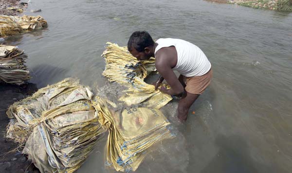 A man washes empty cement bags at Tawi river in Jammu. -Excelsior/Rakesh By Daily Excelsior - March 28, 2014 Share FacebookTwitterWhatsAppPinterestLinkedinCopy URLTelegramEmailTumblrReddItPrintKoo A man washes empty cement bags at Tawi river in Jammu. -Excelsior/Rakesh A man washes empty cement bags at Tawi river in Jammu. -Excelsior/Rakesh Follow our WhatsApp channel