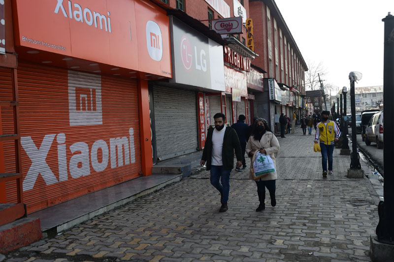 A market closed in Srinagar during weekend lockdown on Friday. -Excelsior/Shakeel