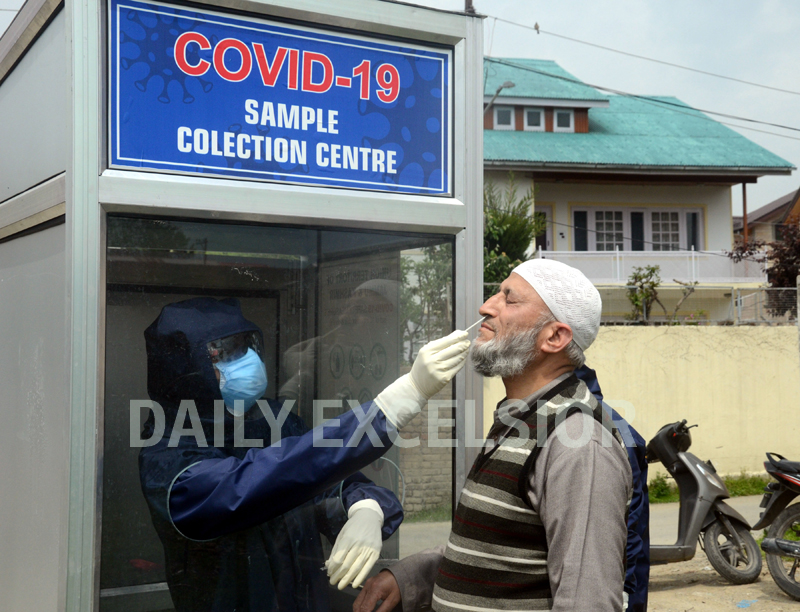 A member of medical team takes sample for Corona test of a person in Hyderpora, Srinagar on Monday. -Excelsior/Shakeel By Daily Excelsior - April 28, 2020 Share FacebookTwitterWhatsAppPinterestLinkedinCopy URLTelegramEmailTumblrReddItPrintKoo A member of medical team takes sample for Corona test of a person in Hyderpora, Srinagar on Monday. -Excelsior/Shakeel A member of medical team takes sample for Corona test of a person in Hyderpora, Srinagar on Monday. -Excelsior/Shakeel Follow our WhatsApp channel