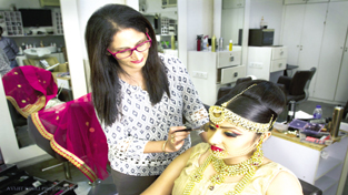 A model being applied makeup at ‘The Headmasters Wellness Zone’ in Jammu.