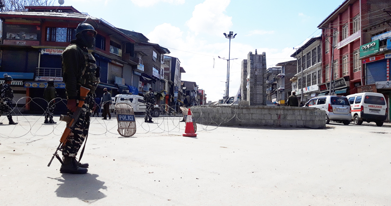 A para-military personnel stands guard during lockdown in Anantnag on Sunday. —Excelsior/Sajad Dar By Daily Excelsior - March 29, 2020 Share FacebookTwitterWhatsAppPinterestLinkedinCopy URLTelegramEmailTumblrReddItPrintKoo A para-military personnel stands guard during lockdown in Anantnag on Sunday. —Excelsior/Sajad Dar Follow our WhatsApp channel